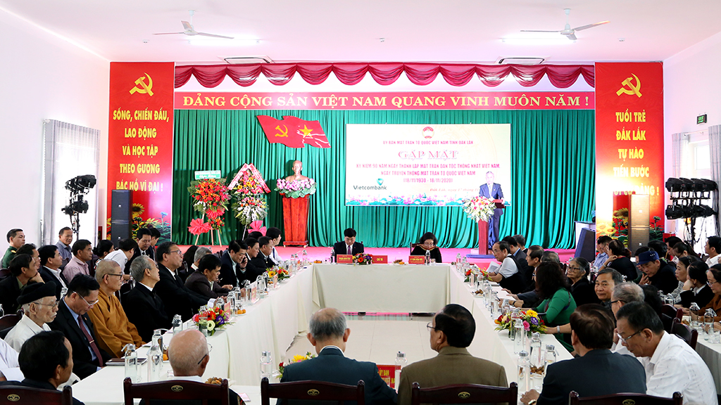 Tại buổi gặp mặt, các đại biểu đã ôn lại lịch sử hình thành và truyền thống vẻ vang của Mặt trận Dân tộc thống nhất Việt Nam dưới sự lãnh đạo của Đảng Cộng sản Việt Nam và chủ tịch Hồ Chí Minh trong 90 năm qua. Những thắng lợi vĩ đại của nhân dân ta trong sự nghiệp đấu tranh giải phóng dân tộc, thống nhất đất nước, xây dựng và bảo vệ Tổ quốc Việt Nam xã hội chủ nghĩa là minh chứng sinh động, khẳng định “Đại đoàn kết toàn dân tộc trong Mặt trận Tổ quốc Việt Nam là sợi chỉ đỏ xuyên suốt trong đường lối cách mạng của Đảng Cộng sản Việt Nam”. Trong đó, các cấp MTTQ Việt Nam tỉnh Đắk Lắk từ tỉnh đến cơ sở đã luôn phấn đấu, nêu cao bản lĩnh chính trị, đoàn kết thống nhất vượt qua mọi khó khăn, hoàn thành nhiệm vụ được giao.