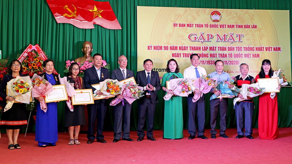 Nhằm tôn vinh những tập thể, cá nhân có nhiều cống hiến trong công tác mặt trận, tại buổi gặp mặt, Ủy ban Trung ương Mặt trận Tổ quốc Việt Nam đã trao tặng Kỷ niệm chương “Vì sự nghiệp đại đoàn kết dân tộc” cho 04 cá nhân; UBND tỉnh tặng bằng khen 05 tập thể, 05 cá nhân; Ủy ban MTTQ Việt Nam tỉnh Đắk Lắk tặng Bằng khen 05 tập thể và 05 cá nhân.